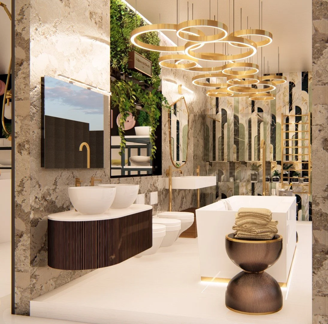 The design enhances both aesthetics and commercial performance by encouraging clients to envision whole environments, seamlessly combining ceramics, sanitary ware, and fixtures into cohesive, desirable spaces.